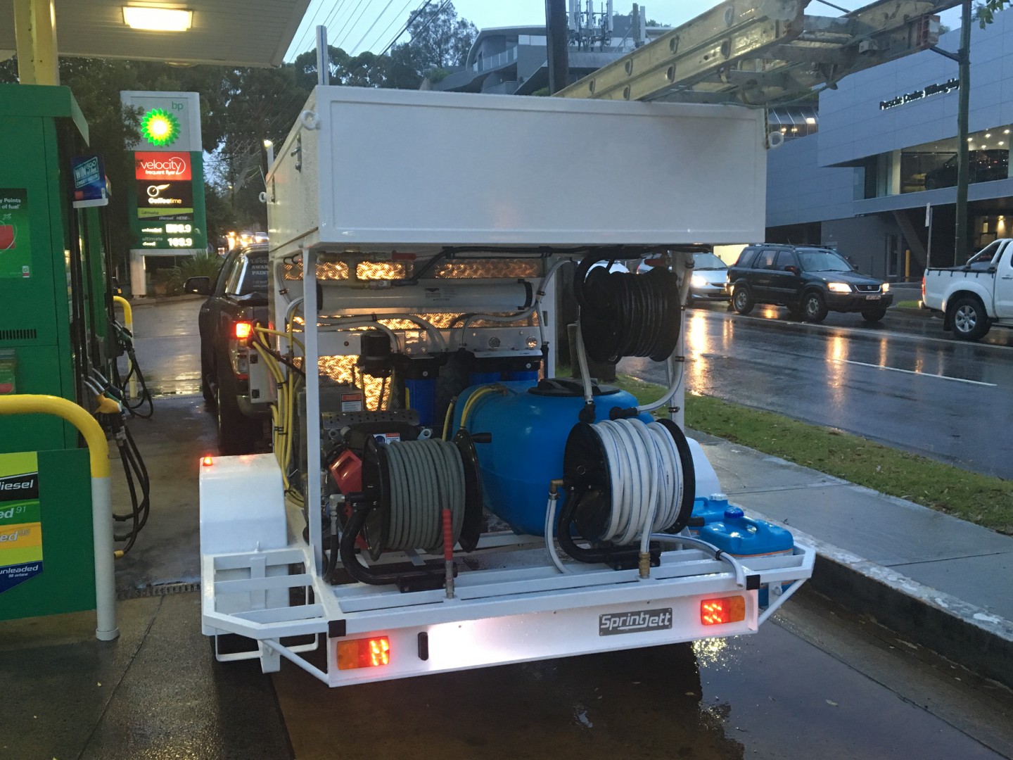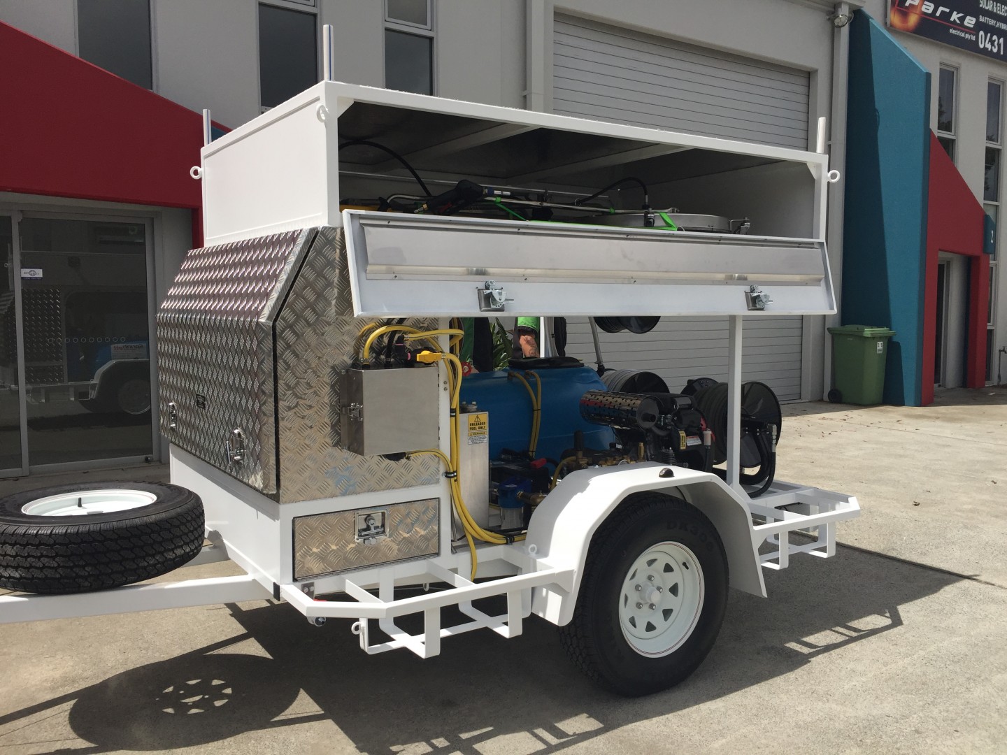 Heres a shot of the original unit I built for my self. Similar spec on the Pressure wash unit and RO/DI system. Obviously no proportioner available at the time so I fashioned up a simple 200 litre spot spray with a beefed up fatboy 12V as a softwash.