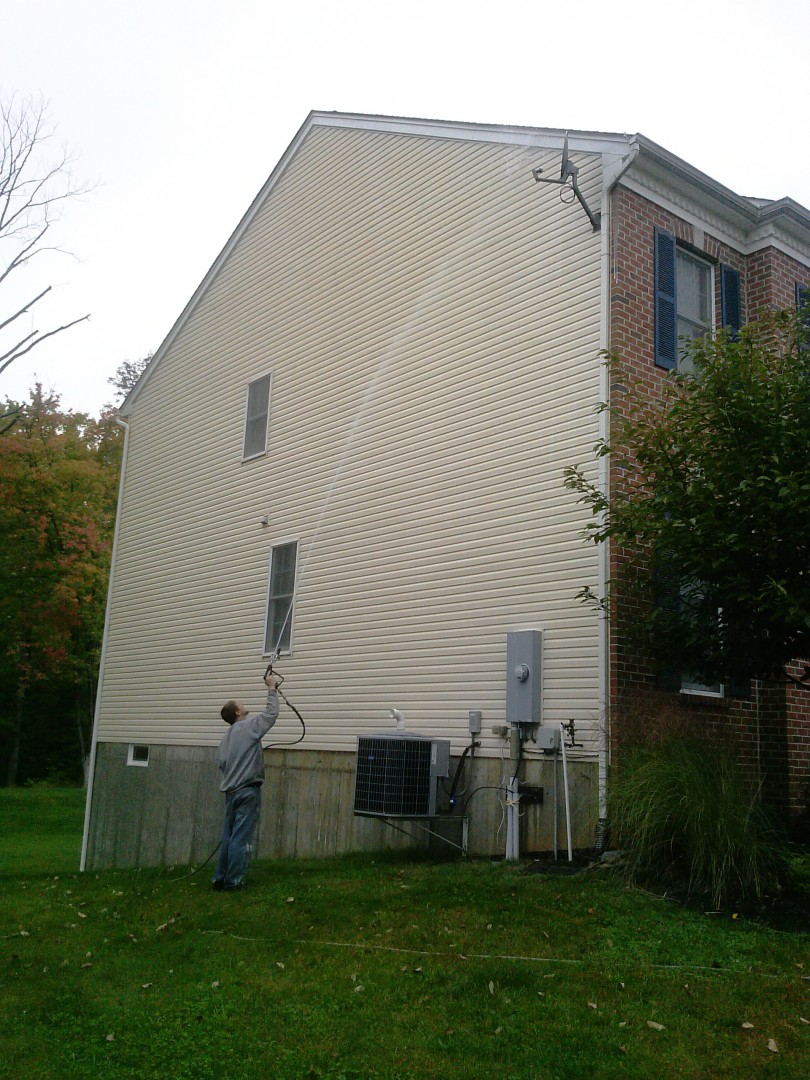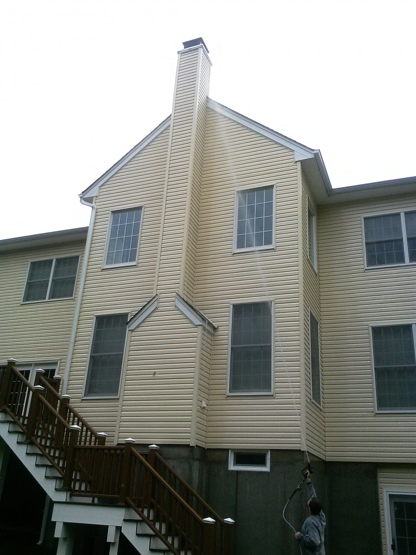 This is a house I am bidding for a house wash. No way my 12 volt pump will reach anywhere close to that peak. Will I need a lift for this? I'm standing in the neighbors driveway to take the photo. Barely any safe place for a ladder on the slope. Would a booster pump spray that far? Pressure washer?