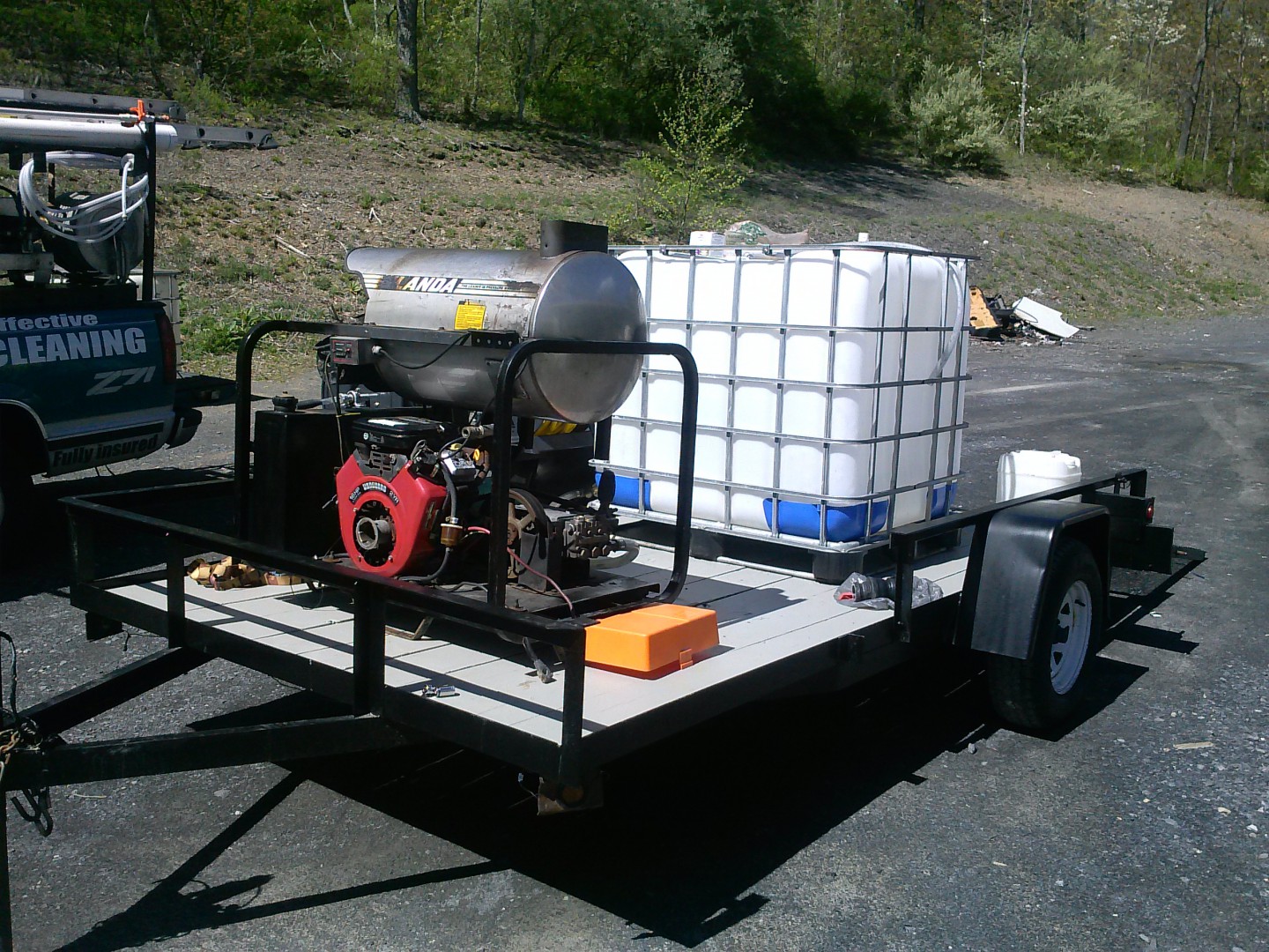 Late last season and in March and April of this year we used our hot water trailer but last week I decided to redo it. We pulled all the equipment off of it and painted the chassis(turned in on it's side with my engine hoist). All boards were sanded and painted (battle ship grey for now). The boards will ultimately have a bed liner paint on them.
