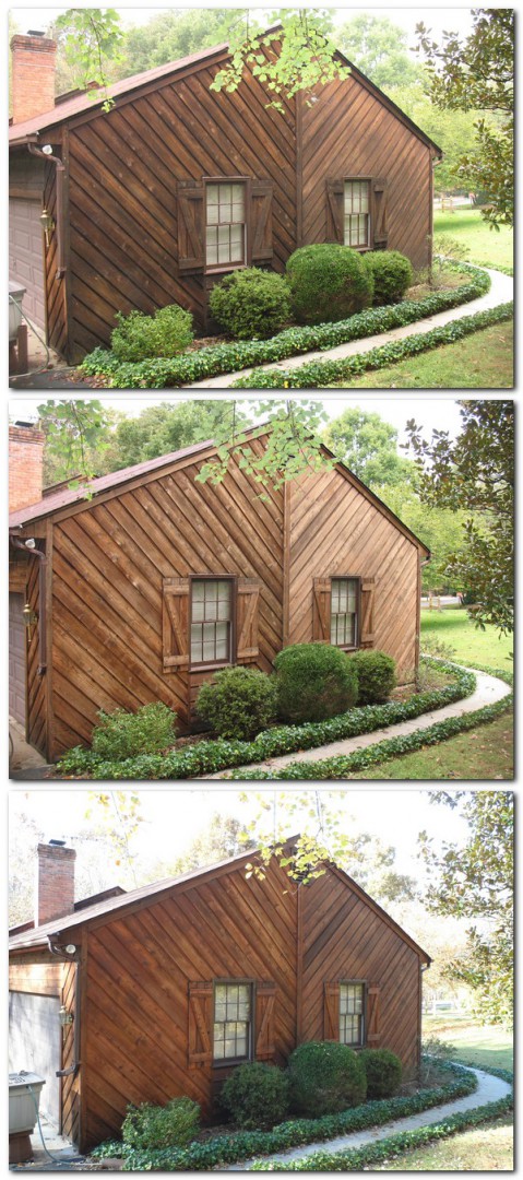 The pictures are what his siding looks like now, and you will see he started to just pressure wash the siding. He definitely is removing a layer of wood when he pressure washed with just water.
