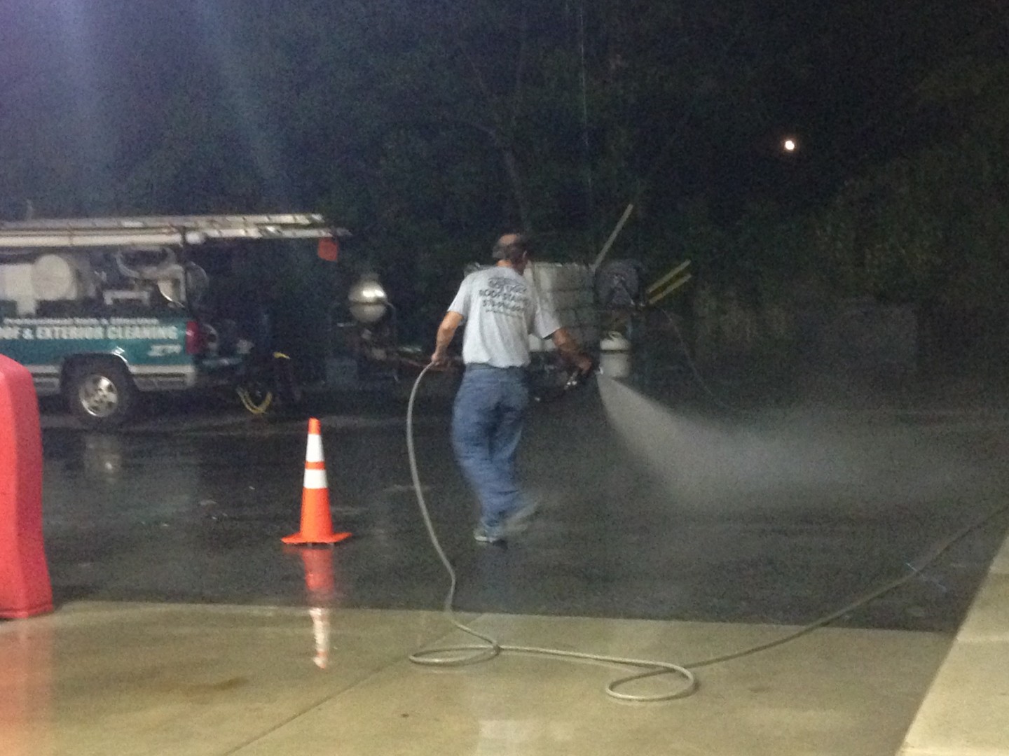 Although it's a holiday weekend I was out last night with the truck and hot water trailer getting to our flat work customers. My 16 daughter had my back for the videos and photos. This eight pump gas station/convenience store was our first stop.