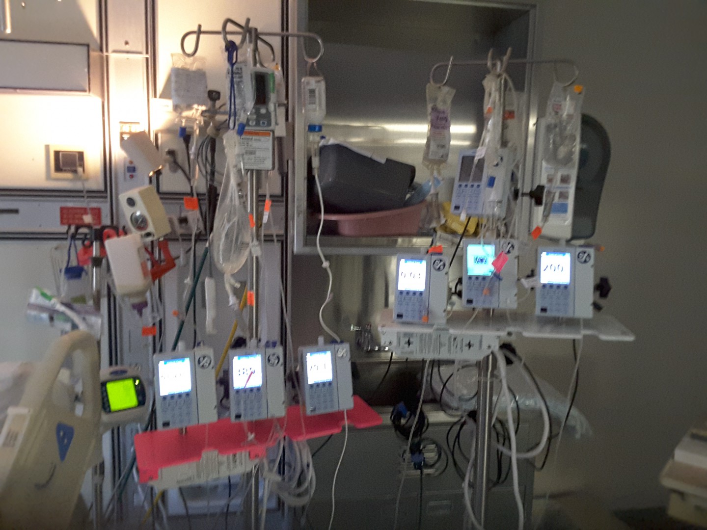 Gezz... would you lookat all these IVs that's crazy.but it took all of them to stop the seizures and brain swelling