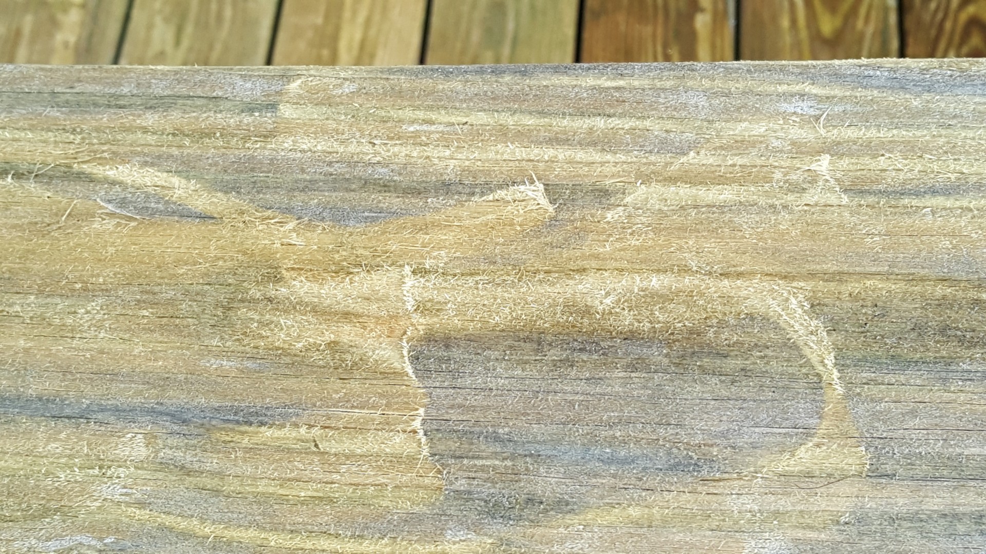 So I'm thinking omg that don't sound good. So we walk around back to see a deck half chewed up. I mean it was very bad. The owner asked if I could fix it lol.