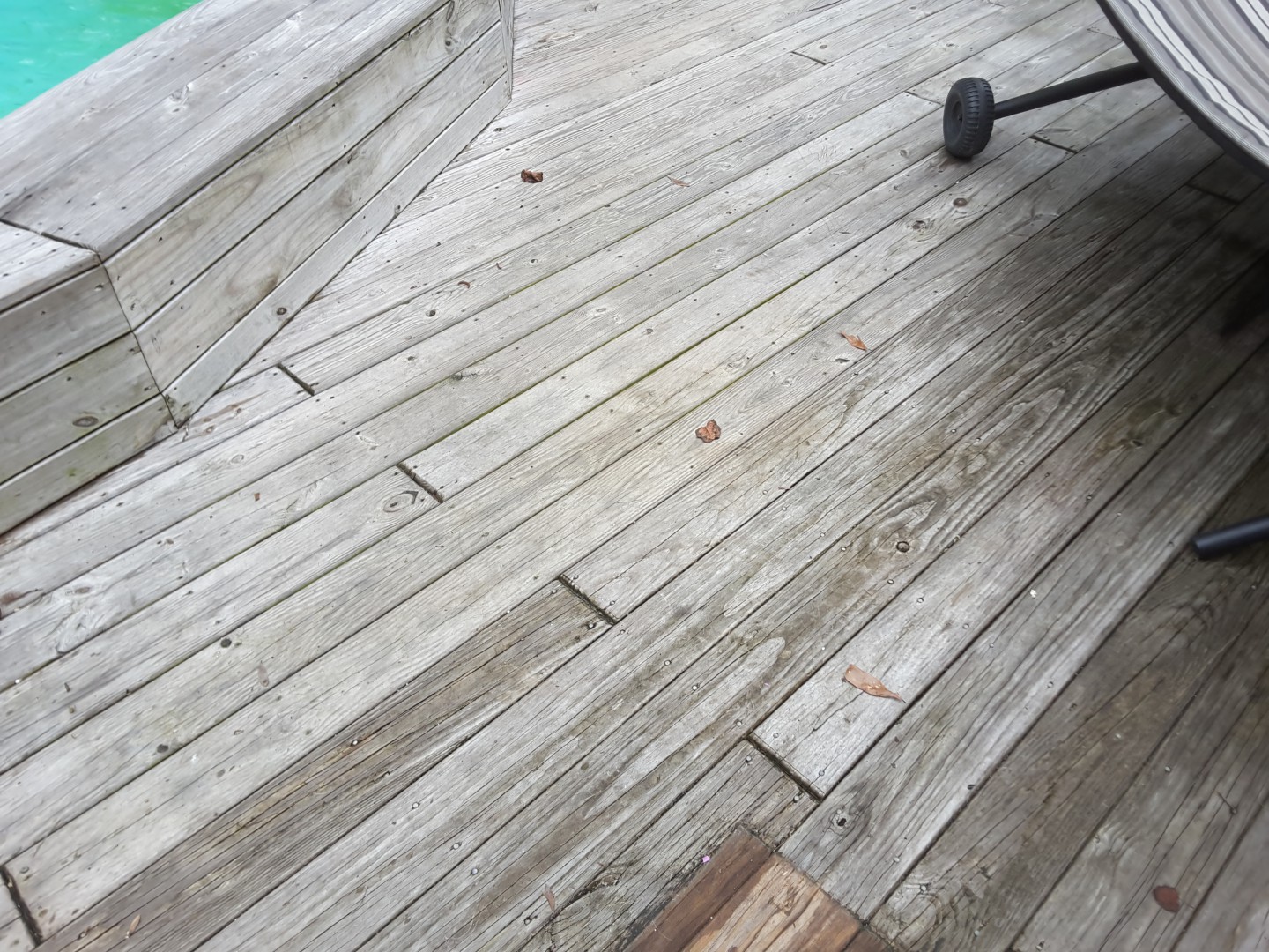 But the wood is still holding black marks. Here is the spots I'm talking about. And another picture of the deck when it's dry. Plain wood as far as I can tell. No stain no nothing.