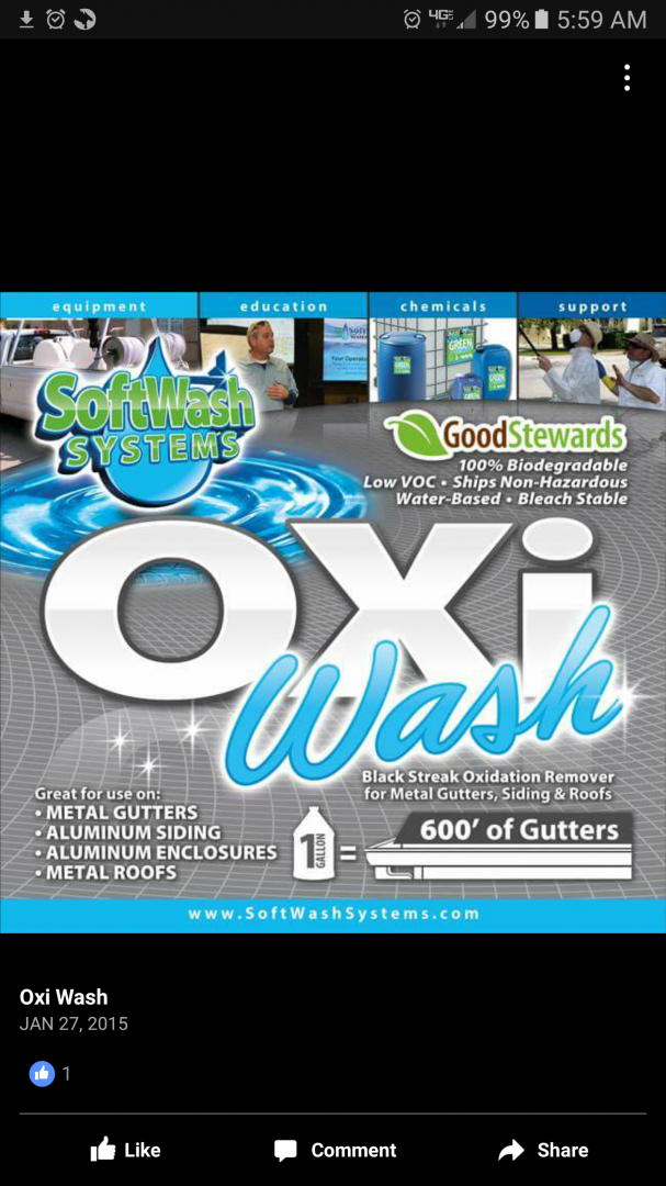 What is "Oxi-Wash". Don't use anything with the word "oxi" in in for typical siding washing. Oxi cleaners work well on raw wood,..and that's about it,..and also in the laundry as a chlorine free bleach.