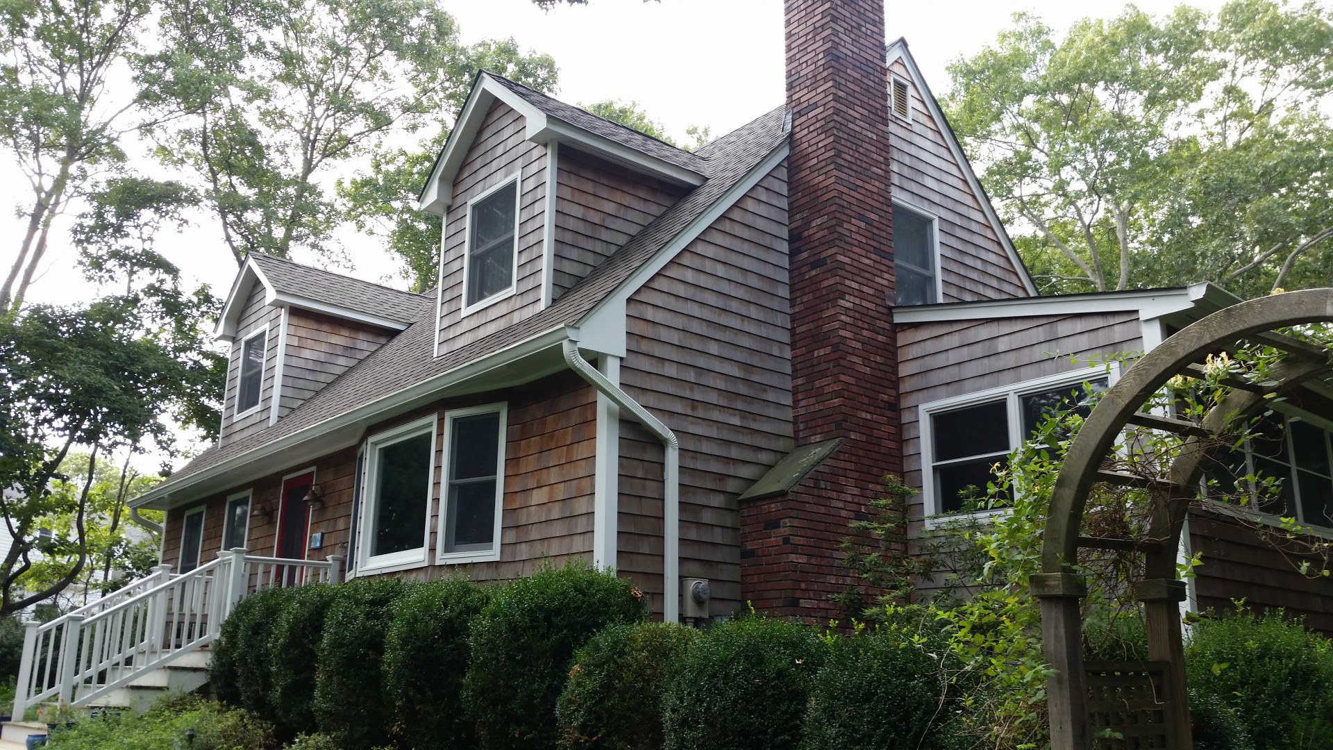 This customer contacted us at CedarRoofCleaningLI.com to clean their cedar shingles that were starting to get infested with mold, mildew and algae. Using our no pressure cedar cleaning process we were able to properly maintain these shakes without causing any damage to them. We can also clean a cedar roof or siding in under half the time of our competitors and at a much more reasonable price due to the labor savings.