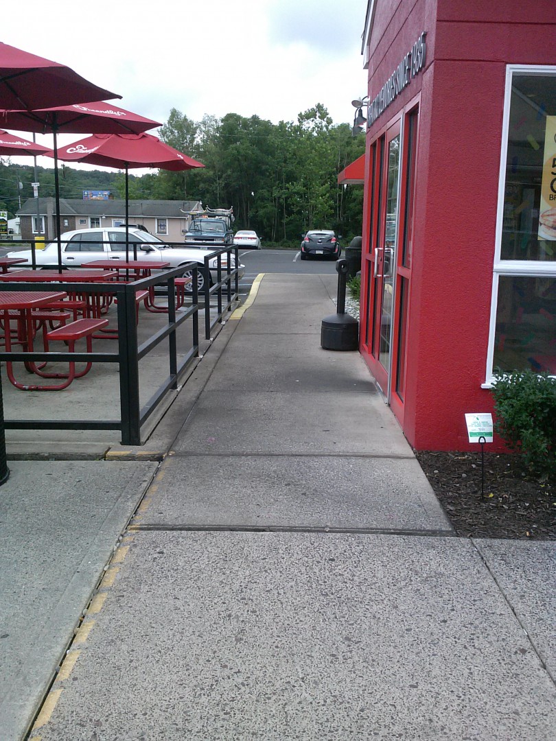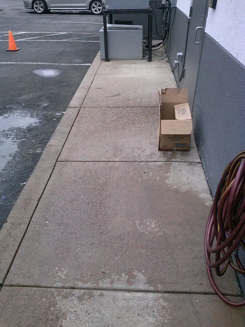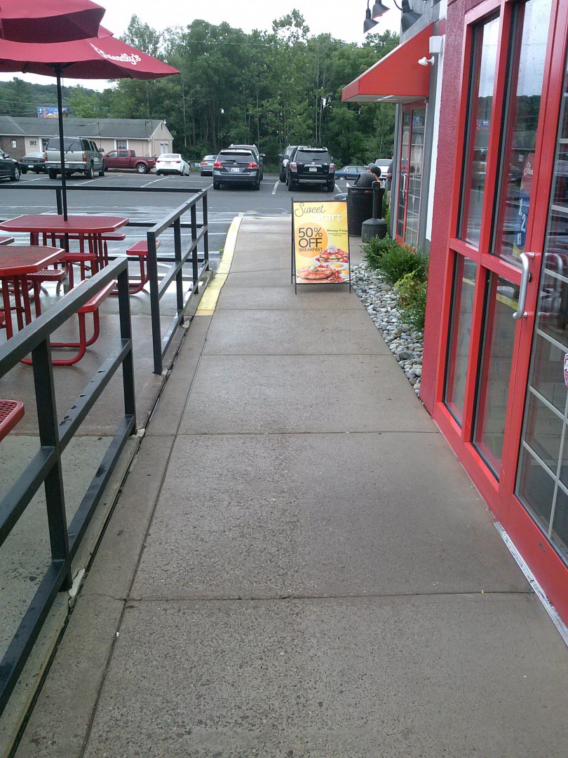 Our local Friendly's restaurant called us recently to perform a general pressure washing clean up of all their concrete areas surrounding their Tannersville PA location. Their management wanted a clean and inviting exterior, which included all concrete areas. On Tuesday, 8/2/16 the staff of Pocono Non-Pressure Roof & Exterior Cleaning were dispatched to the location with our professional commercial grade hot water pressure washing equipment to service the sidewalks, sitting areas, emergency exit pads, trash dumpster pads and kitchen entrance. All gum, food grease and dirt were removed from these areas.