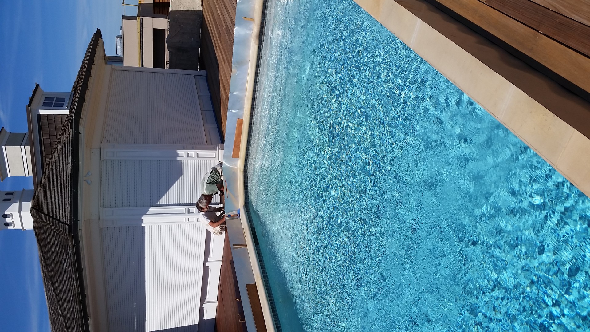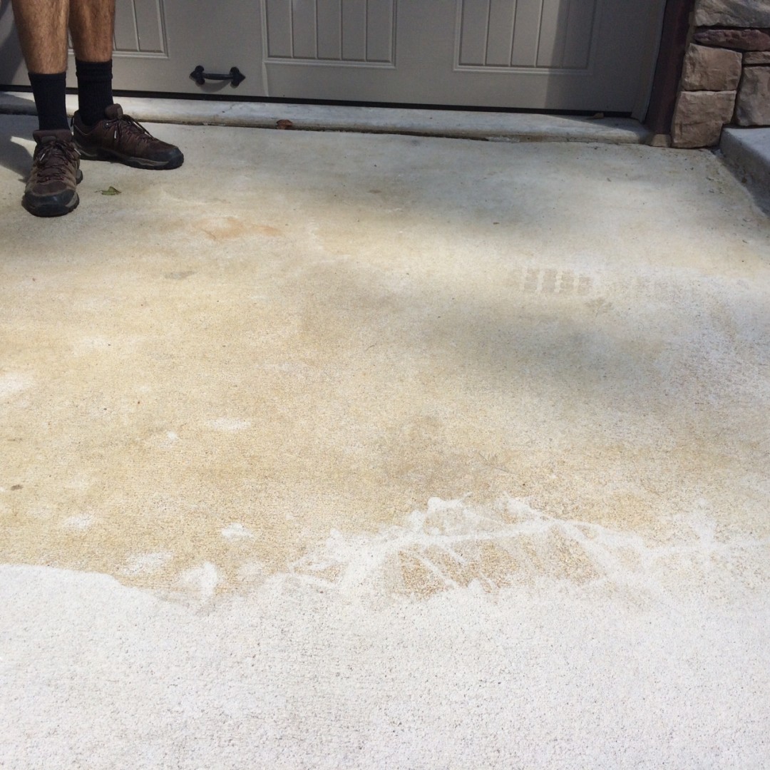 Here are a few photos. The one photo (the guy's feet are in photo) has a section that he did himself using a product called SureKlean. It seemed to work but only works for 50-75 sq. ft per gallon!