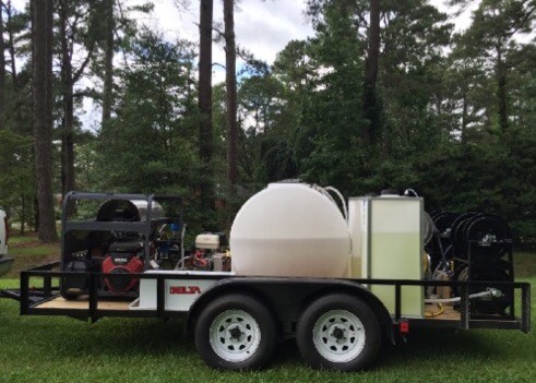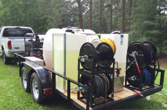 - 5.5 gpm, 3500psi hot water pressure washer. Vanguard motor, general pump. Set up for Down streaming. Bypasses to water tank - 4 gpm 4000psi cold water pressure washer. Honda motor, general pump. Set up for down streaming. By passes to water tank - 4 summit hose reels: 2 for garden hose, 2 for PW hose - 200' of PW hose on two of the reels, 400' total - 250' of garden hose - roof cleaning system with titan hose reels, battery, 12v pump, kuri tech hose, gun, nozzles etc - 2 PW wands, down streaming soft wash nozzles - 2 verticals 50g tanks: 1 for down streaming house wash, 1 for roof cleaning - 1 pro-portioner - mixes water, chemical and soap in the line for desired ratios. No mix tank required, pro-portioner does mixing for you. - 325g water tank - Hudson float valve - Generated - booster pump for rinsing roofs and bushes when roof cleaning - 19 in surface cleaner: whisper classic - tool box - new ladder rack - 4 new tires - trailer new, double axle with breaks - 6x14