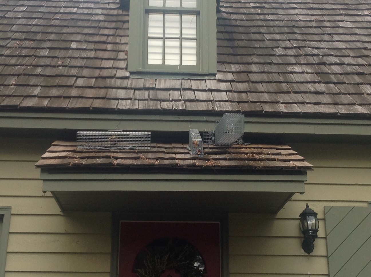 I went to do a bid today to clean a Cedar Roof. You won't believe what I saw above the front door. Yes that is birds that have been dead for god knows how long.