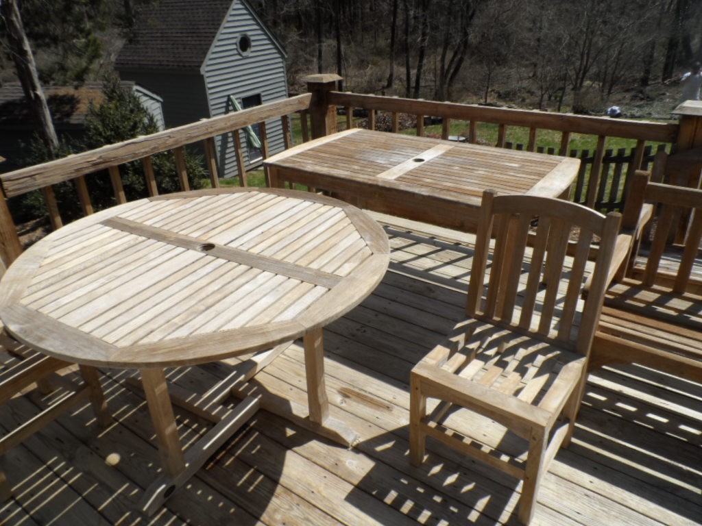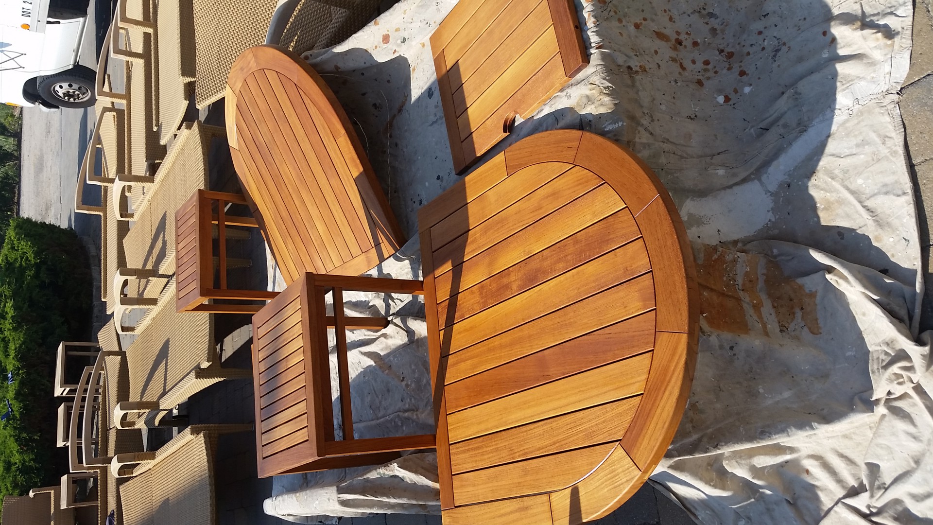 I loved the look on customer's faces when you restore hardwood furniture. Make the wife happy and they will call you year after year comes spring. These are pics from past summer in Hamptons. She was about to purchase a new set. Took 2 of us 2 hrs prep, 2 hrs finish coat. (low pressure PW, brightener, Messemers exotic hardwood oil). Don't remember how many pieces but it was a LOT! The GC told me it was over $25k.