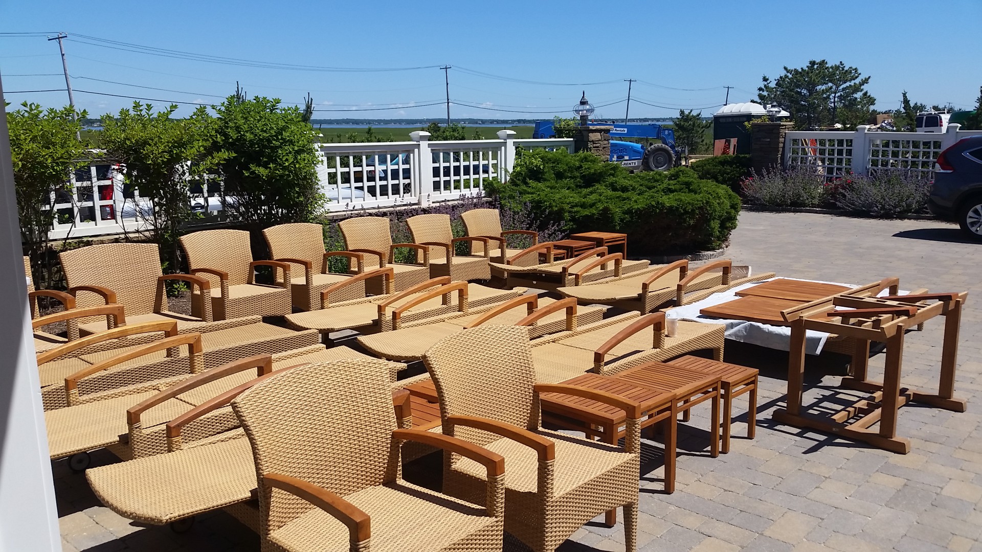 These are pics from past summer in Hamptons. She was about to purchase a new set. Took 2 of us 2 hrs prep, 2 hrs finish coat. (low pressure PW, brightener, Messemers exotic hardwood oil).