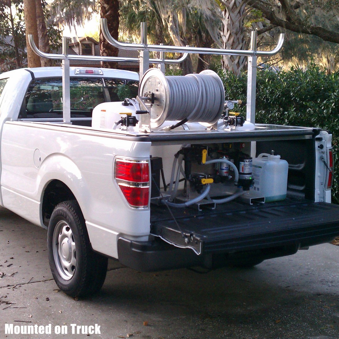 Thank you John, I'm not planning on taking the skid in and out of the truck. Having everything on an open trailer is a pain. Taking a loaded trailer through town is even more of a pain...I'm hoping to fit and plumb my 1/2" air pump set up, 4gpm PW, and booster pump in a 6' bed. Ladder racks will hold hose reels, a box will house the booster pump and most of the plumbing...I hope...Your trucks look very nice and your branding is pretty awesome! One day I hope to be able to afford to buy a built skid...Thats the reason we are gonna rebrand our exterior cleaning service