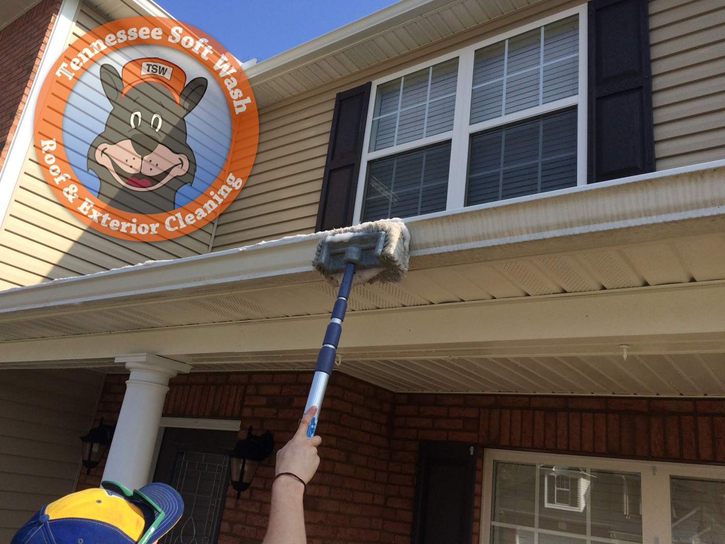 Number one priority when doing gutter brightening is never let it dry on the finish. An ounce of prevention is worth... Prewet plant material and surfaces that you not cleaning.