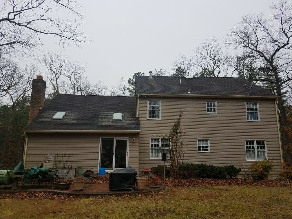 We were contacted by this customer because he is getting ready to list his house and we were recommended by the realtor. As you can see he had some patch work done around the skylights. We were able to clean the roof and now everything matches and now you cant tell that he had shingles fixed or replaced.
