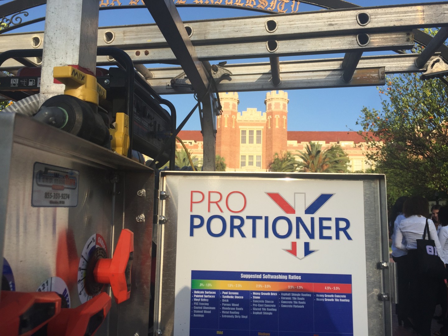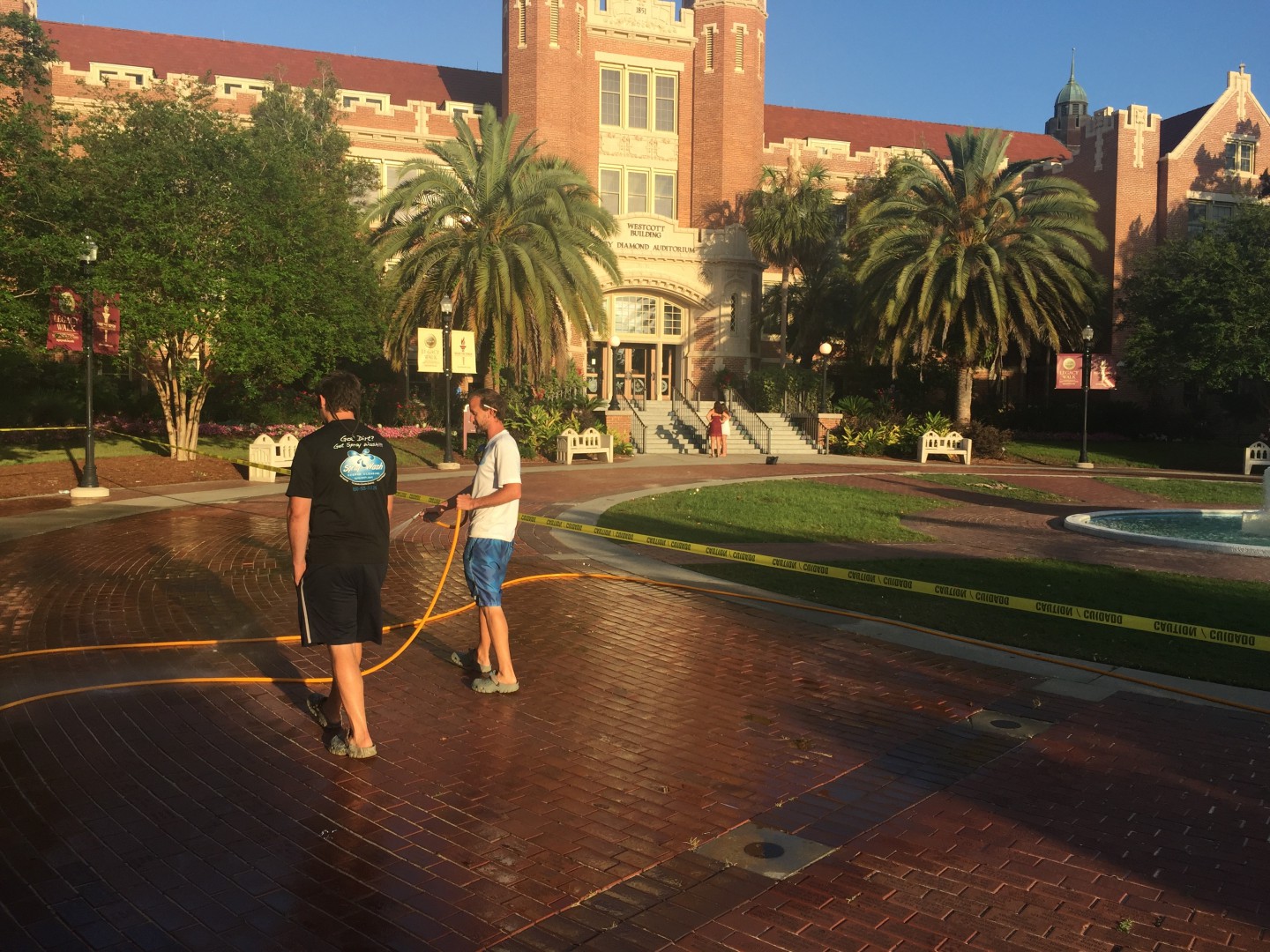 Softwashing the sand set pavers in front of the Wescott Building in front of the Main Gates at FSU this morning. Graduation is next week, so they are trying to get it cleaned up. These photos are from 7:30 AM, and there is already a line of people waiting to get photos made in front of the fountain and at this iconic building. After about 30 minutes of fighting the crowds, I called it off. I'll try again tonight after dark.