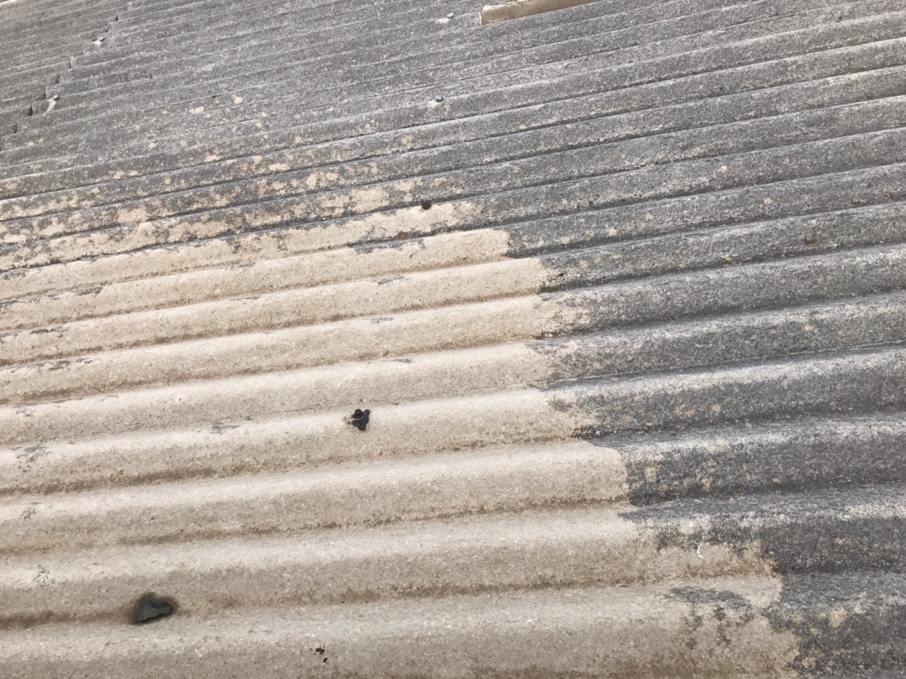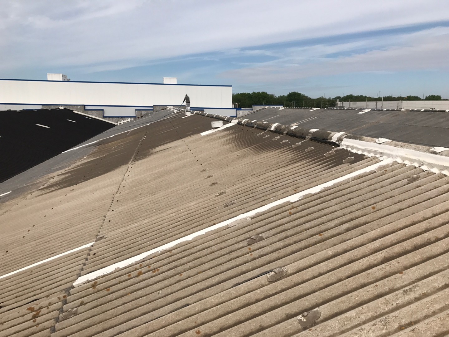 Liberty SoftWash soft wash this asbestos roof in Indiana this weekend. It was about 30,000 sq and was able to clean without pressure washing it so the coating contractor could spray his foam.