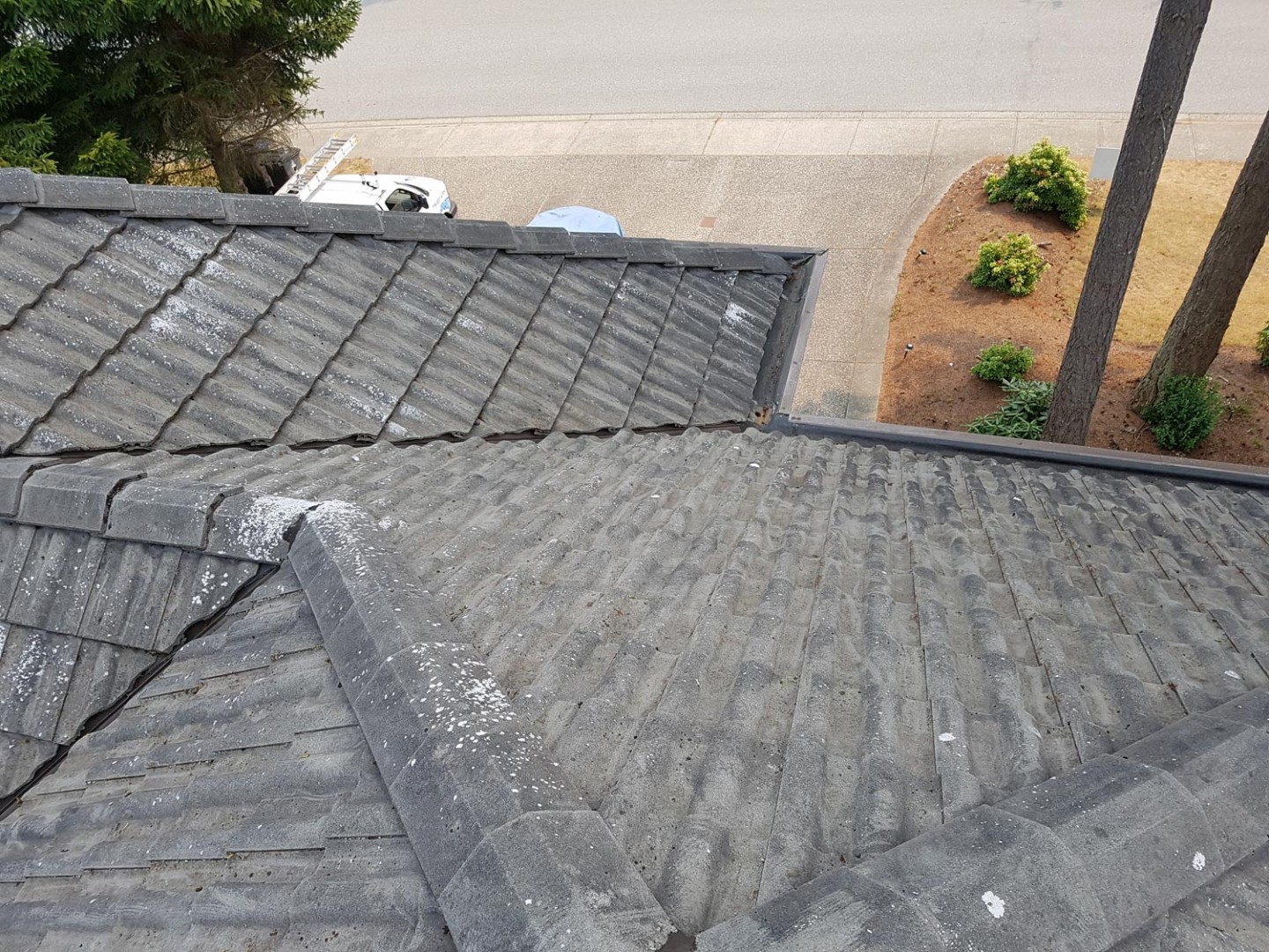 In the area where I live we have a lot of concrete tile roofs. The problem I am referring to is white areas looks like spots on the roof. I did my research online and some people saying it is calcium carbonate or Lime. It can be cleaned with some acids like (muriatic acid or acetic acid). I tried them both in a different concentrations. Almost no result.