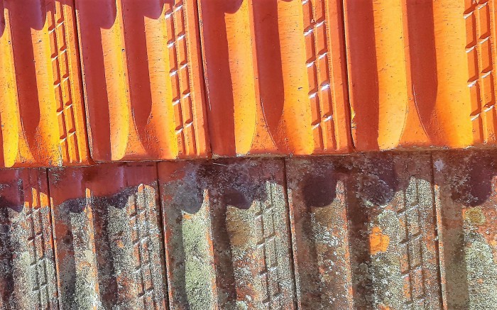 They are terra cotta clay tiles that get bad with lichen.
