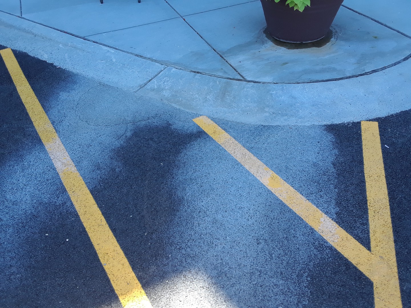 A customer asked me to quote cleaning the asphalt parking lot at a new Retirement complex. The parking lot is new with few oil stains. IMO the parking lot looks just fine. They are having a VIP visitor and wants everything cleaned. Should I just spot clean or run a surface cleaner over all of it. It does have two white stains from flower pots shown in the attached. Suggestions? Thanks.