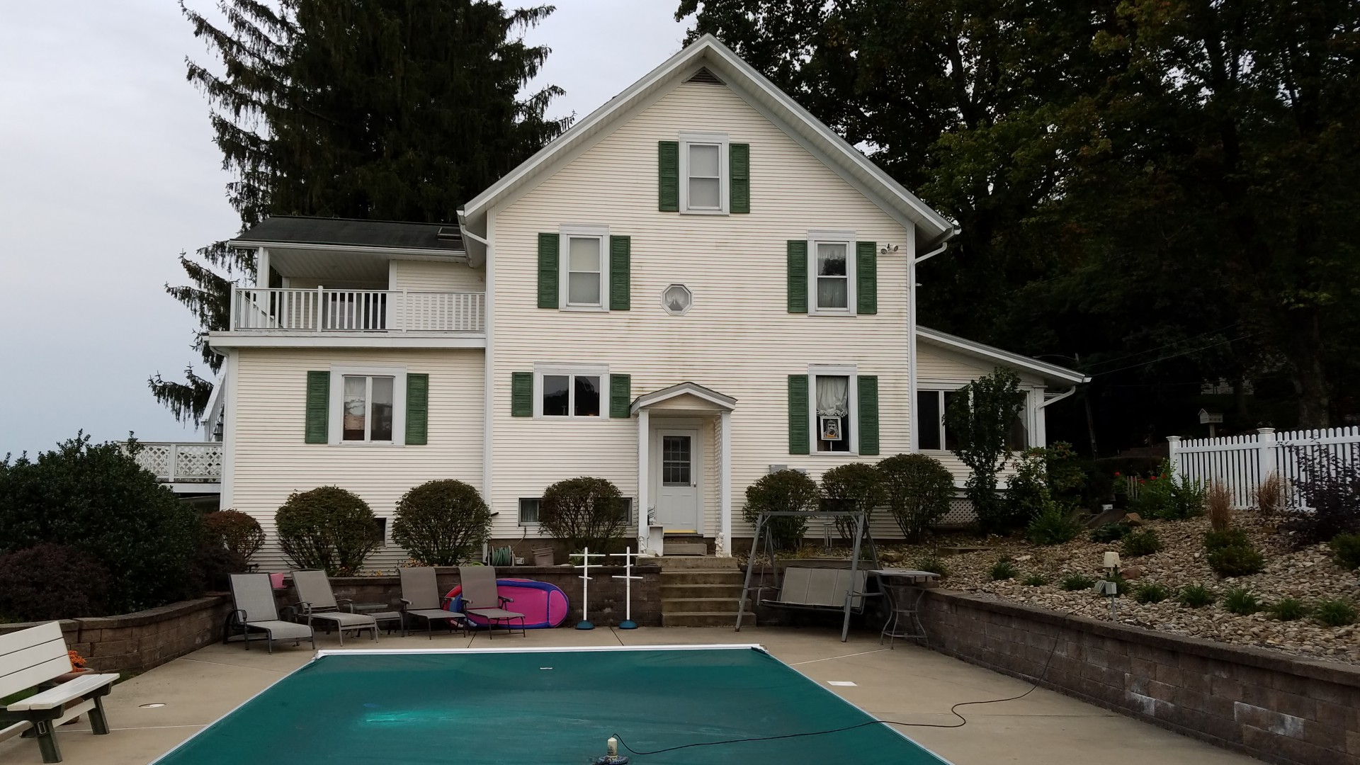 PAsoftwash enjoyed softwashing the roof and vinyl siding of this beautiful home in Indiana, PA. The homeowners were very pleased with the outcome and told us it "Looks Outstanding". We will follow up with them in the Spring of 2018 to get the pool areas ready for the summer.