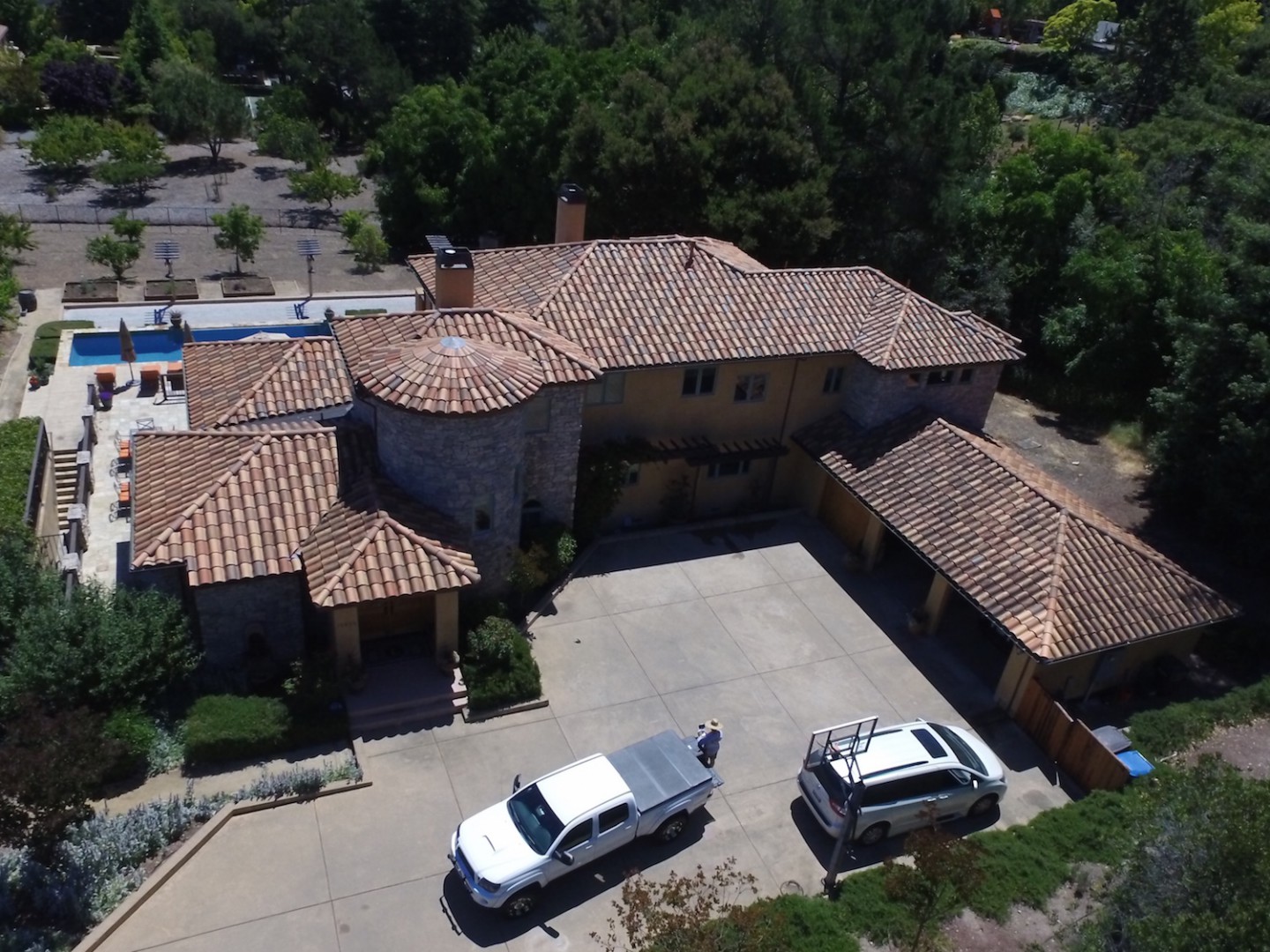 Pacific Exterior was contacted by the owners of this home in San Jose, California after seeing our many positive reviews. They were concerned about dark staining on their clay, Spanish tile roof and its loss of color. They also did not want to have the roof pressure washed. After we cleaned the roof they had us do repairs as well as soft wash cleaning of 3,000 square feet of slate and decorative concrete.