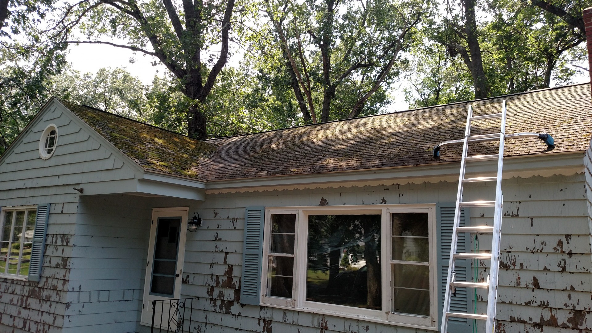 In December we had some good weather, the customer was putting the house on the market in February. The crew neglected to remove the heavy moss so it sat there as a wet blanket. The garage was a lower pitch than the house and had way more. The moss on the house fell off with the light rains (we didn't have much rain last year). I had to send them back to drag the moss off as best they could without damage. It was 80% better. Another email and a worried customer, we went back after he signed off on probable damage to scrub and rinse on a 43 degree day. Had they followed protocol (for us) and gotten the heavy moss off I am sure we would not have had to go back. Removing the heavy moss has cut down the concerned calls and call backs in situations like this.
