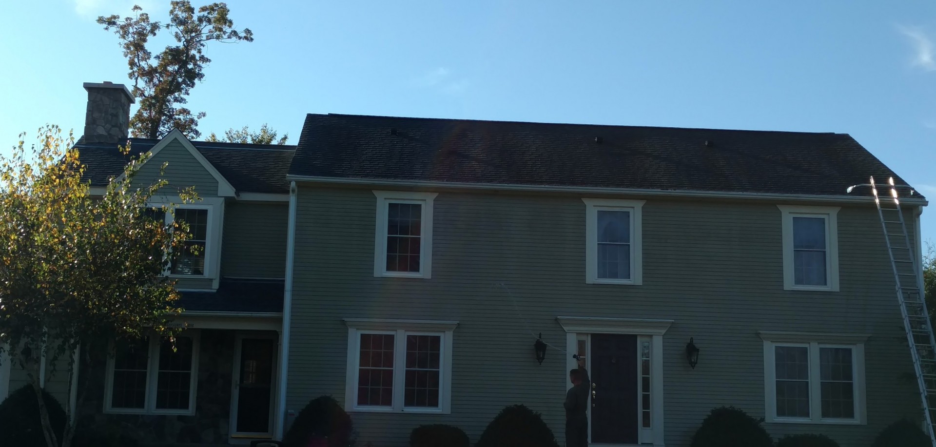 Good eye Zach. That's my guy pre-soaking the plants and siding before I did the roof. Weak well pressure around here. I was trying to save the water I hauled over in my buffer tank for the house wash.