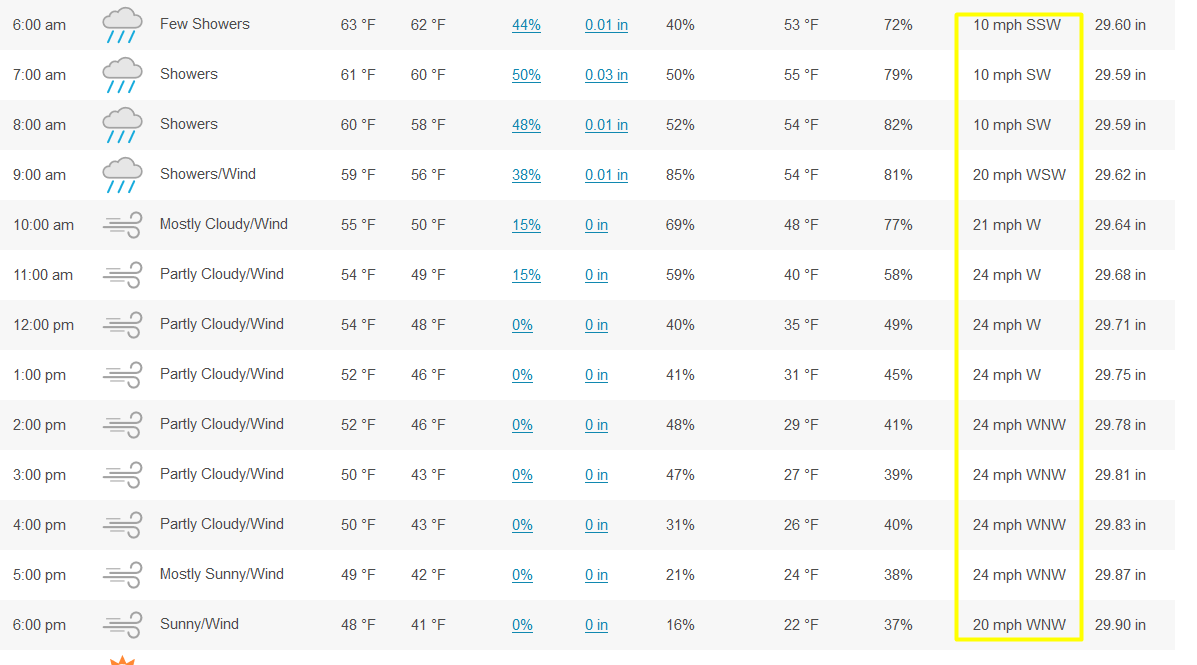 Snow Rain Wind Rain Wind Snow Wind Wind Wind Great week to schedule...
