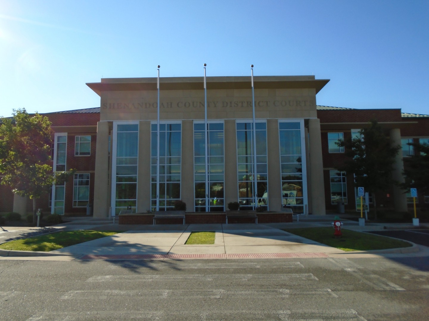 The Shenandoah Government Annex as well as the courthouse where showing many years of abuse from the elements. After seeing the work we did on the Massanutten Regional Library they hired Blue Ridge Exterior Cleaning to bring the buildings back to life. All the Dryvit and casting as well as some sidewalks and benches were cleaned. Once they were clean we cleaned all the exterior window with our water fed pole