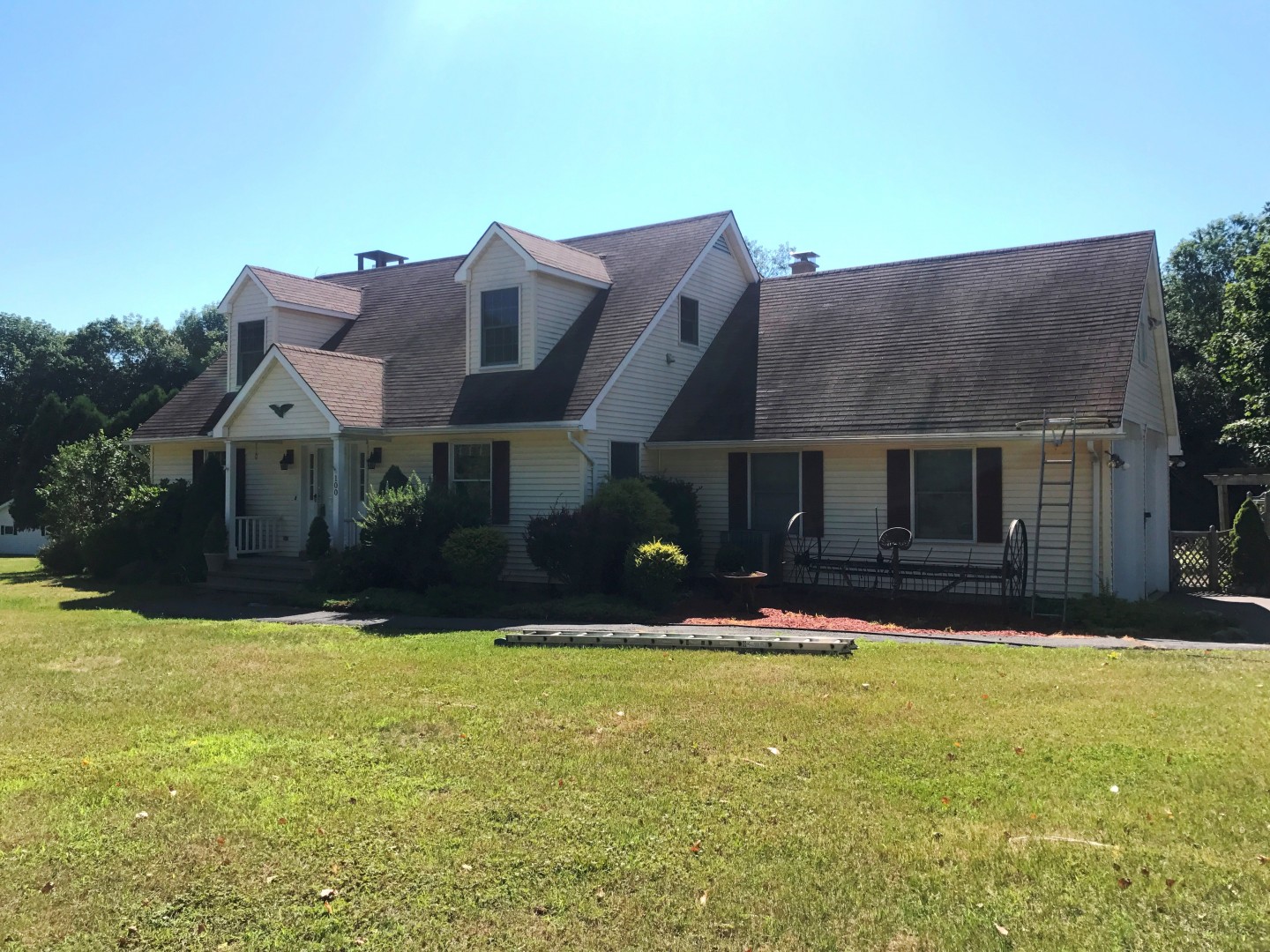 Various realtors in Monroe, Carbon, Northampton, Wayne and Pike Counties of Pennsylvania are now recommending Pocono Non-Pressure Roof & Exterior Cleaning to their clients. Their recommendations are in the interests of improving the curb appeal and increasing the value of the property. As can be seen in these photos the immediate results are evident. The roof was completely eradicated of black algae and the life of the existing moss and lichen were terminated. In addition the roof was completely sanitized.