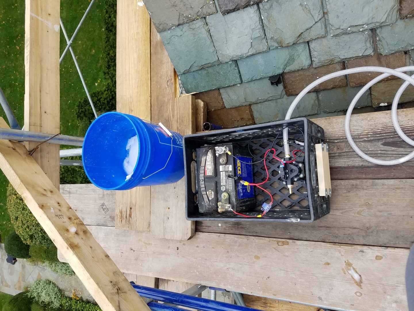 It's for use as a chemical pump for controlled spraying, small jobs, or in this case, we are working off scaffolding since theres a lot of carpentry repair, pointing, some slate tiles replaced.