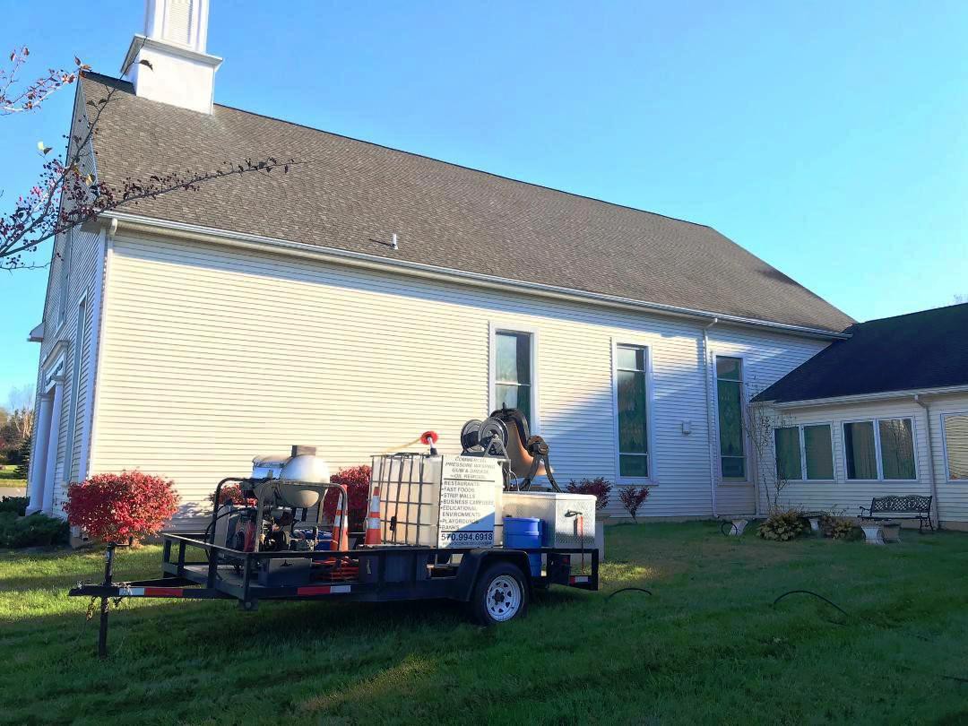 Pressure Washing Community Presbyterian Church Mount Bethel, PA 18343/570-994-6918/www.poconoroofclean.com