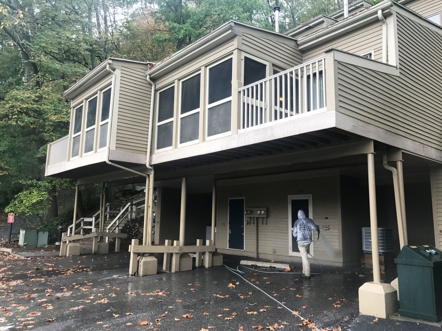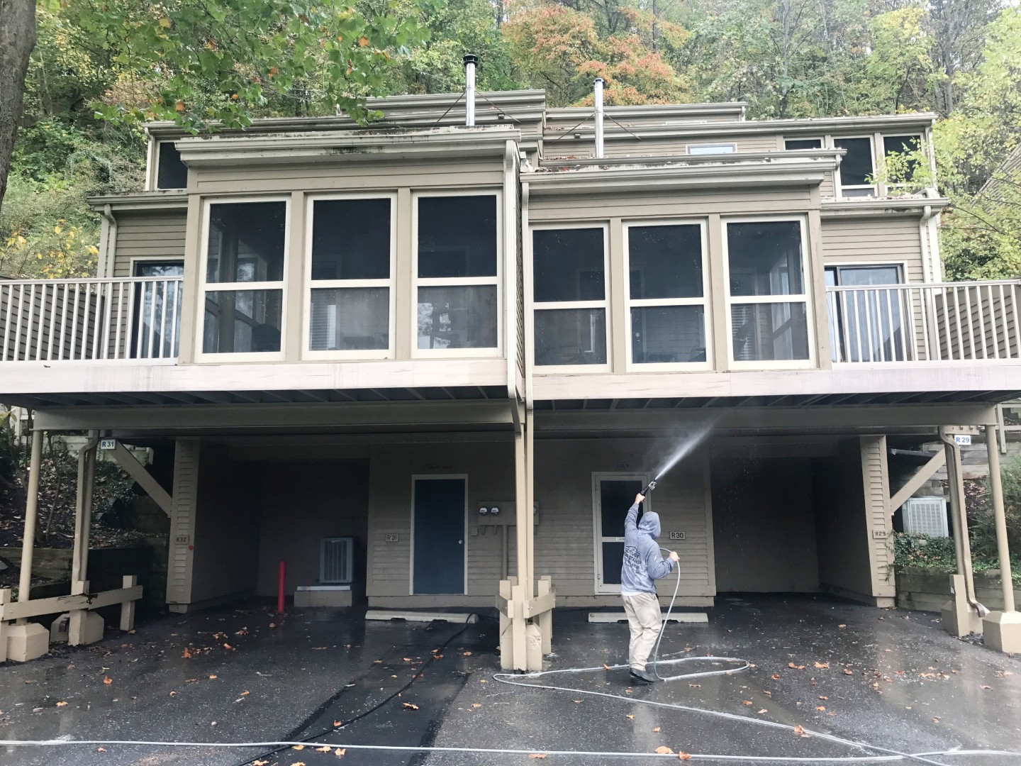 As the leading provider of pressure and power washing in the Pocono region our staff at Pocono Non-Pressure Roof & Exterior Cleaning has the ability to clean any substrate on a property. With our commercial grade truck mounted equipment we can handle all jobs quickly and efficiently without interrupting the continuity of family life. These timeshares needed the 36 carports cleaned and ready for check in, which we accomplished using our knowledge, experience and our talented crew.