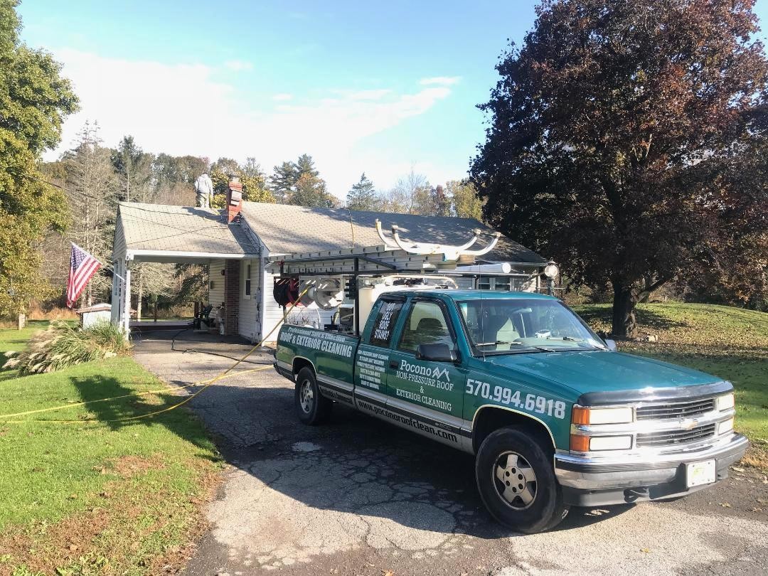 Every year our office at Pocono Non-Pressure Roof & Exterior Cleaning receives leads from our realtor friends throughout the Poconos. This home in Delaware Water Gap was represented by a results driven realtor who advised the owner of the advantages of having the roof cleaned properly. The property owners reached out to us and we provided them with a free quote and confidence.