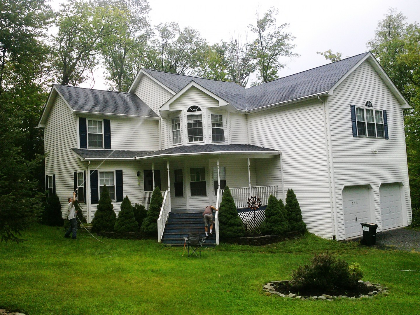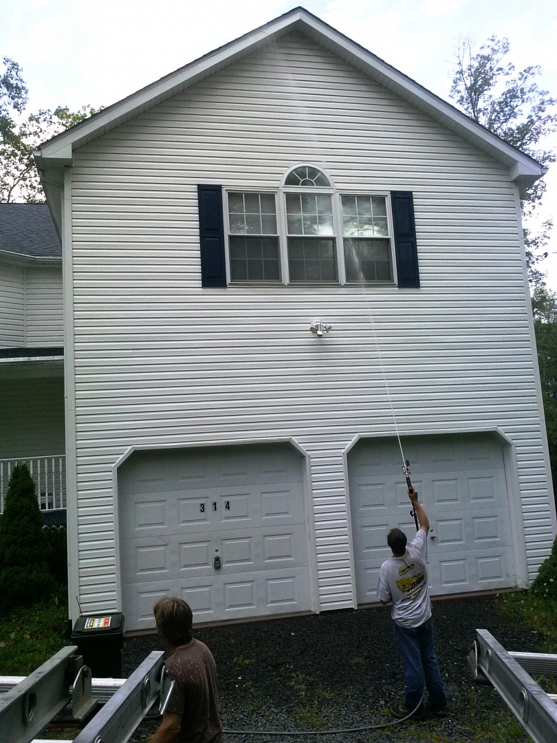 At Pocono Non-Pressure Roof & Exterior Cleaning we can provide many options when it comes to cleaning your property. Vinyl siding is a rather soft material. We can soft wash it to remove the algae, cobwebs and, bird droppings. For concrete walks, walls, foundations, and hard surface patios we can either pressure wash it or power wash it depending on the issue at hand.