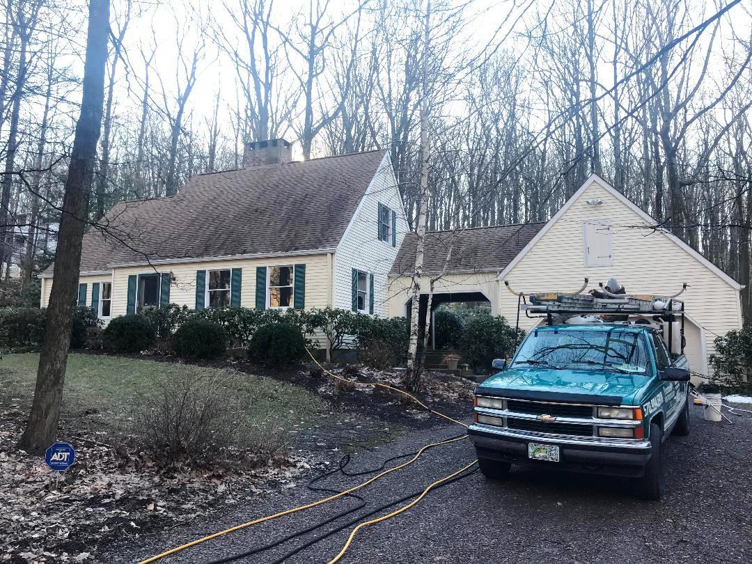 Returning customers know the quality of our (Pocono Non-Pressure Roof & Exterior Cleaning) work. We serviced this home six years ago for the homeowners. It stayed clean until the rains in 2017. We provided our free quote for roof cleaning, pressure washing and patio cleaning and moved forward with the cleaning of the aforementioned areas. All work was completed in four hours much to the pleasure of the homeowners. It was exceptionally windy and cold but we accomplished our goal. For a free quote call or text 570-994-6918 or visit our website "here" for a quote.