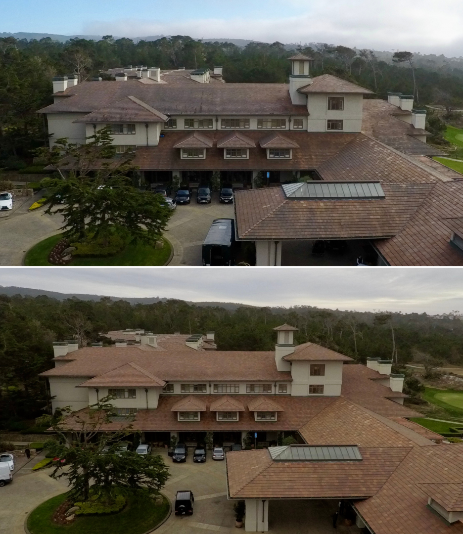 I hope you are all doing as well as can be expected under the circumstances. Things ended very well for us last year. We completed the roof of The Inn at Spanish Bay, 190,000 square feet of clay flat tile. It was a huge job and took a long time because its a super high-end place and everything had to be handled around the guests and vacancies at any given time. Spanish Bay is an iconic golf course at Pebble Beach. We were serenaded each evening by a Scottish bagpipe player at dusk. I have attached some photos of the completed job.