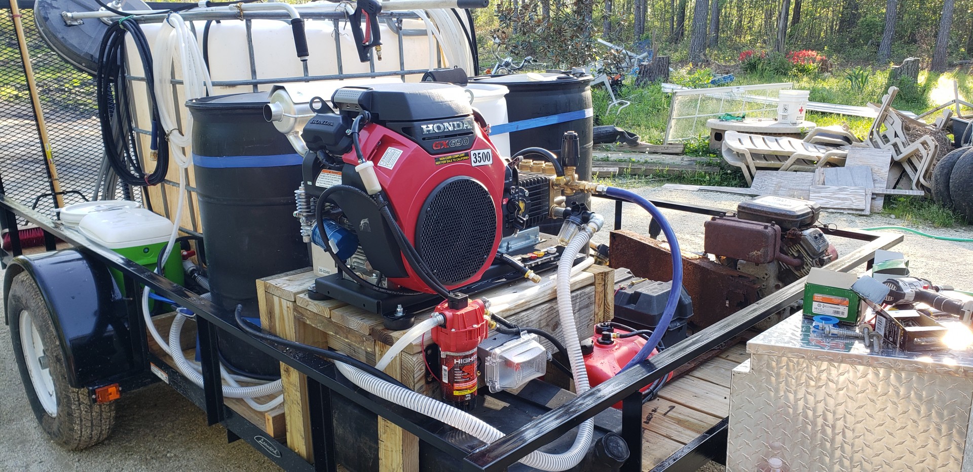 Here’s a picture of my truck and trailer(the name will be getting changed this week). Again, I have been doing this for a while with my painting business so I’m not coming into the game a newbie by any means, but I won’t get one until I need to. My two cold water machines get the job done just fine.