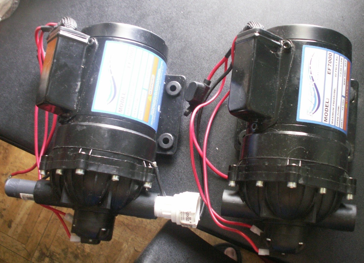 However, now that I have everything needed ready to go, I am having some second thoughts. It revolves around my physical condition now. It turns out that if I have a high flow rate, will I could be wasting a lot of cleaning product unless I can move fast. Well, I'm unable to do much fast moving now, so it seems to me now, a lower gpm may be beneficial in that respect. I could move around slower. The second pump in parallel would only be used during the rinse segment to increase both the gpm and the pressure through the 3/8 hose to help get the product washed off. One related question is, should I consider using an indicator dye? Also, should I consider using a neutralizing product in the rinse off? Meanwhile, I am laying low to avoid getting the Corona Virus, and constantly re imagining my simple basic 12 volt system layout . I hope to set up a bench test this week to see iif a second pump will increase the rinse flow significantly. Chuck
