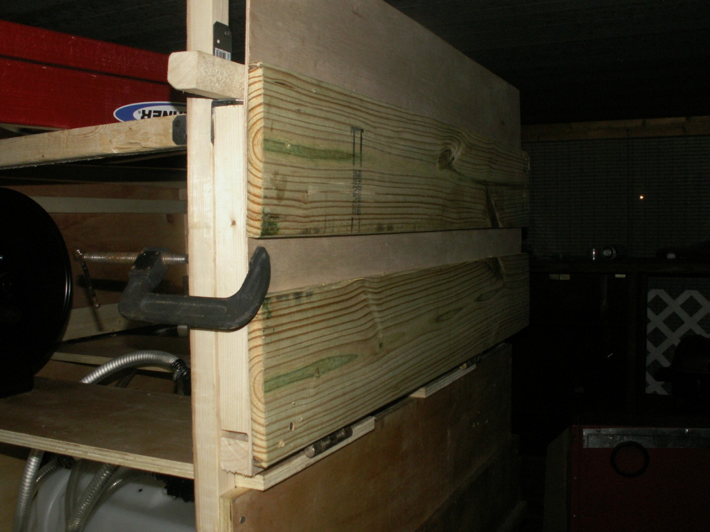 10:4 on rinsing the pump out. Thanks again. The sides of my trailer will fold down when working, and fold up when I'm on the go. That's the plan. I hung my side flaps today. Found that I'm a bit out of square...