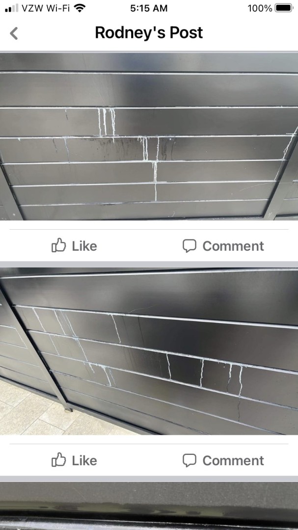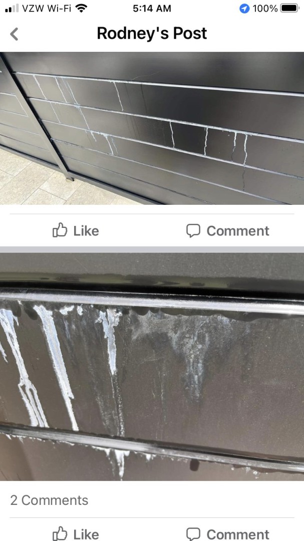 GreenOx renew on a very expensive home. The house turned out great, but this happened on the gate/fence. It is a black metal fence.