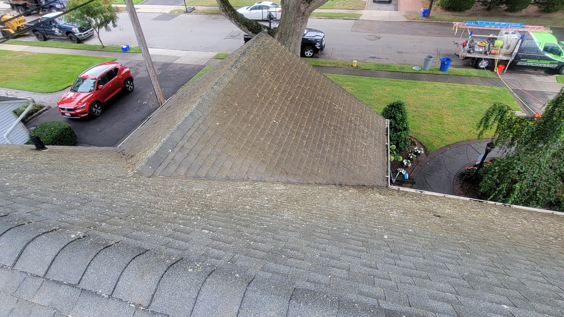 It seems from my experience that the dirtiest homes and roofs generally have oak trees on the property. This house had a giant oak on the front lawn covering the entire house blocking most if not all sun light.