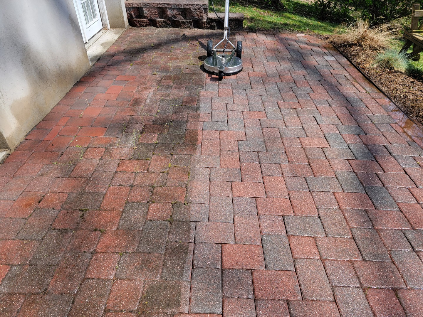This photo is of a paver patio we washed last week.