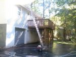 This homeowner hired us based on our many references, our trusted name in the Pocono region and our vast knowledge of exterior cleaning. Our non-pressure roof cleaning thoroughly eradicated the ugly black roof stains. The soft washing methods we employed cleaned the algae on the vinyl siding and driveway. In addition the deck was cleaned in preparition for painting.