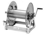 Art, I know nothing about that hose reel. I bought one of these four years ago and the only thing I have replaced is the manifold. It has held up well, the Liberty Co. is easy to order parts from and it holds 300' of 1/2 poly braided. I just ordered another for my garden hose and it's less expensive than what I paid in '10. They also have SS.