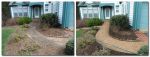 The roof had a combination of algae, lichen and moss growing on the large majority. The white vinyl siding was green in places where the true color wasn't noticeable. The sidewalks were dark brown, black and full of moss. We also cleaned the deck so that it could be repainted.