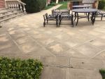 Patrick, that's a colored concrete that has been pressure washed 1 too many times. Or just with too much pressure. A lot of high end concrete finishes are worked to bring out the "creme", the concrete cement with the color. We see this expensive finish ruined all the time by homeowners and professionals. What your your seeing is the colorless aggregate that is leftover. It's a common shame and there is no way to fix it.