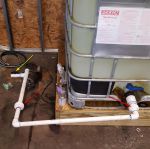 I am so tired of messing with SH we now have 300 gal totes delivered. We built a platform so it's higher than the pump. In the picture, the red arrows are unions so we can easily remove the plumbing and replace the tank. Yellow is for fresh water to clean out the pump. This is what I got done today and will hopefully finish in a few days. All 1" plumbing to the tank in the truck.