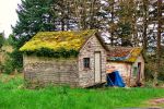 Old cottage house in rolling hills.